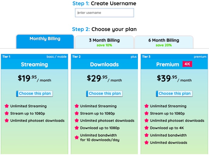 | 1ヶ月 | 19.95ドル | 29.95ドル | 39.95ドル |